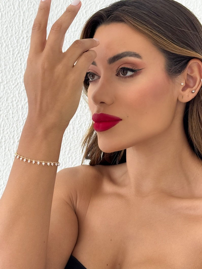 Design delicado com pérolas douradas, ideal para usar no dia a dia ou em ocasiões especiais.