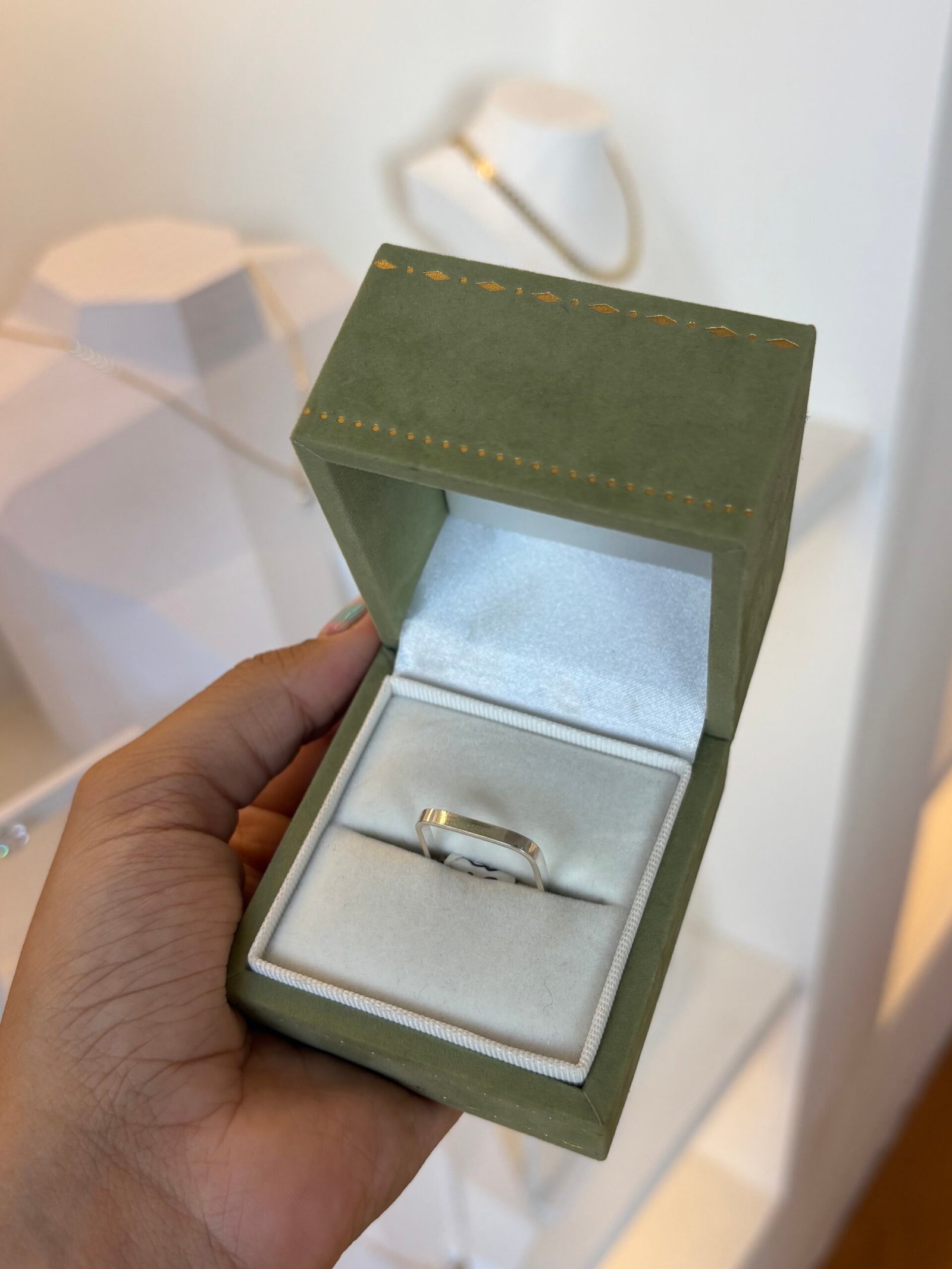 O Anel Quadrado Minimalista da Alvarenga Joias é a escolha perfeita para quem dita tendências. Confeccionado em Prata 925 legítima, este modelo rompe com o formato circular tradicional, oferecendo uma estética futurista e “clean” que valoriza a pureza do metal.