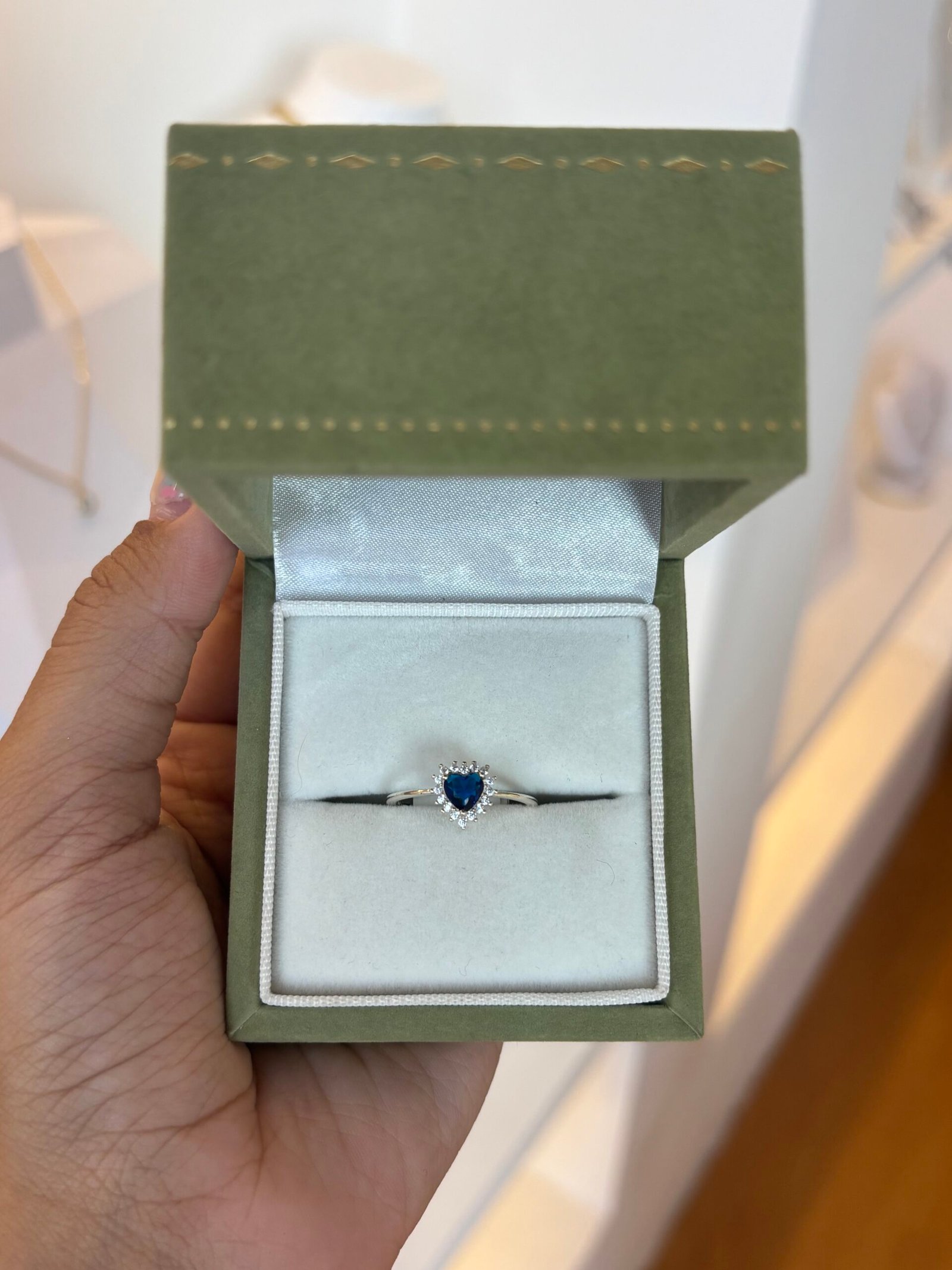 • Pedra Central: Zircônia Premium Azul Royal em lapidação coração.