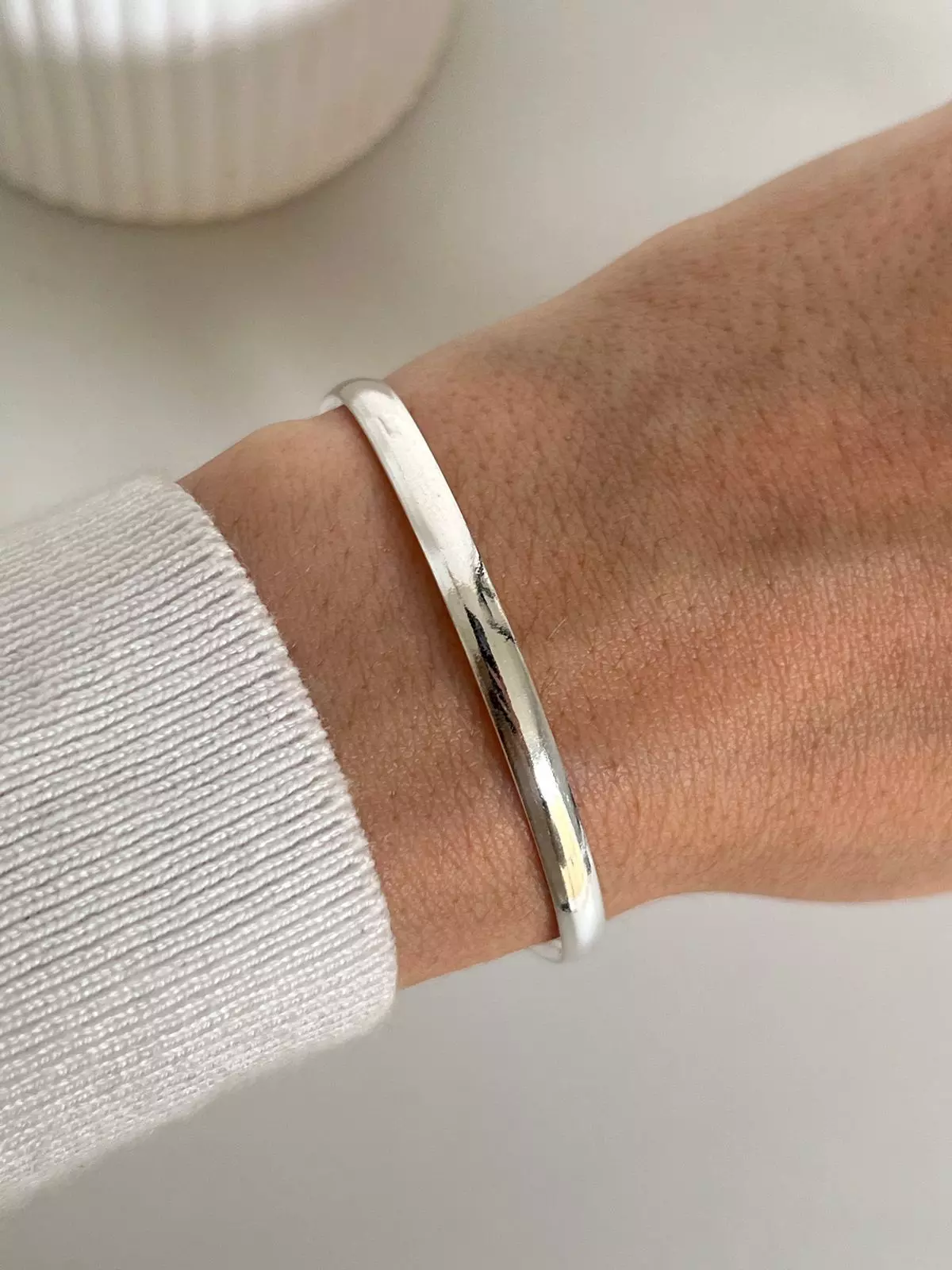 Produzido em Prata 925 legítima, o bracelete possui estrutura rígida, oferecendo firmeza, conforto e excelente durabilidade. Seu visual liso valoriza o brilho natural da prata, tornando a peça extremamente versátil — ideal para usar sozinha em um look refinado ou combinada com outras pulseiras e relógios para composições modernas.