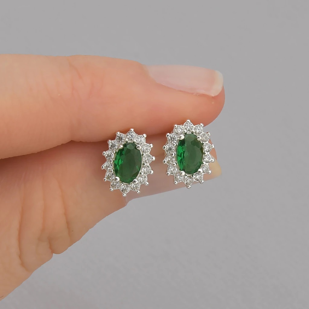 Adicione um toque de realeza e sofisticação ao seu visual com estes magníficos brincos em prata. Apresentando uma deslumbrante pedra central oval na cor verde esmeralda, que remete à elegância clássica, cada brinco é delicadamente adornado por um halo de zircônias cintilantes, realçando ainda mais seu brilho. Perfeitos para quem busca uma peça atemporal que combine luxo discreto com um toque de cor vibrante. Ideais para ocasiões especiais ou para elevar o seu look diário com um charme inconfundível.