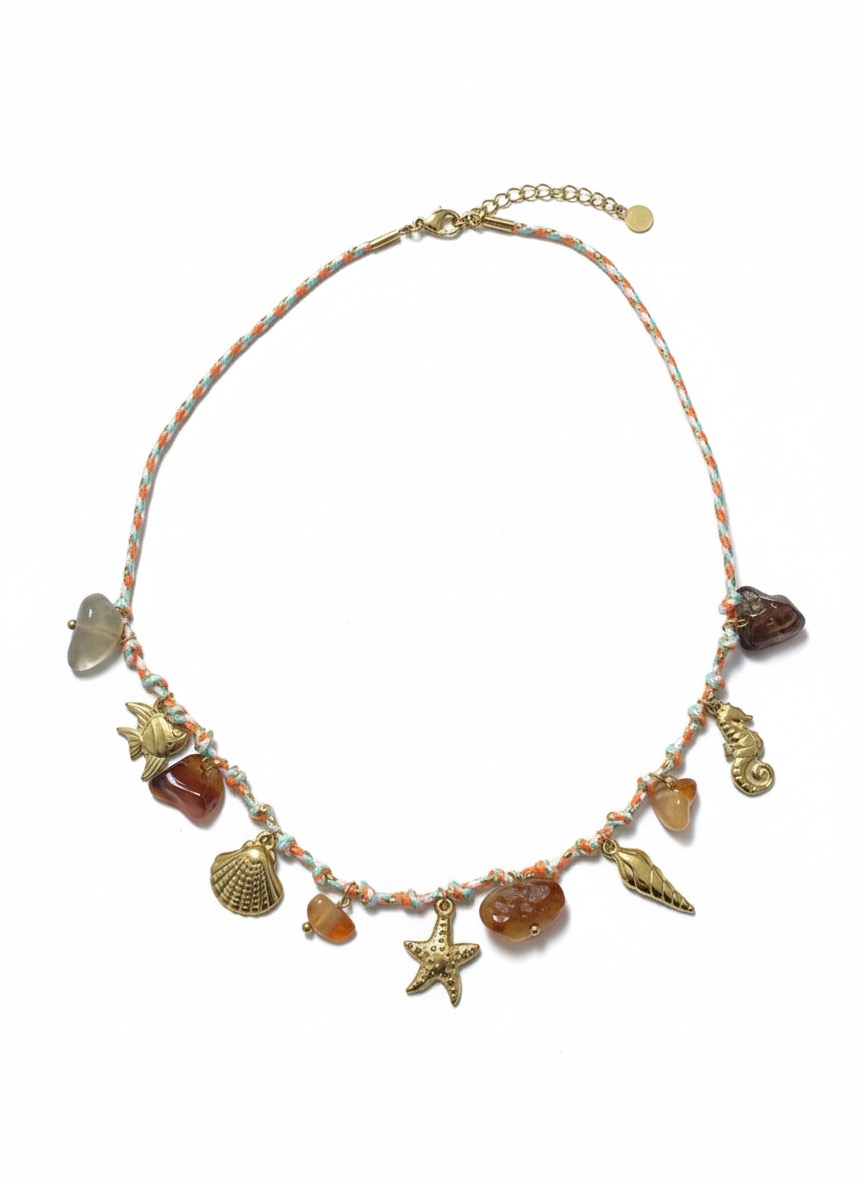 Colar com pingentes inspirados no mar, perfeito para looks de verão. Leve, moderno e cheio de estilo! 🌊✨