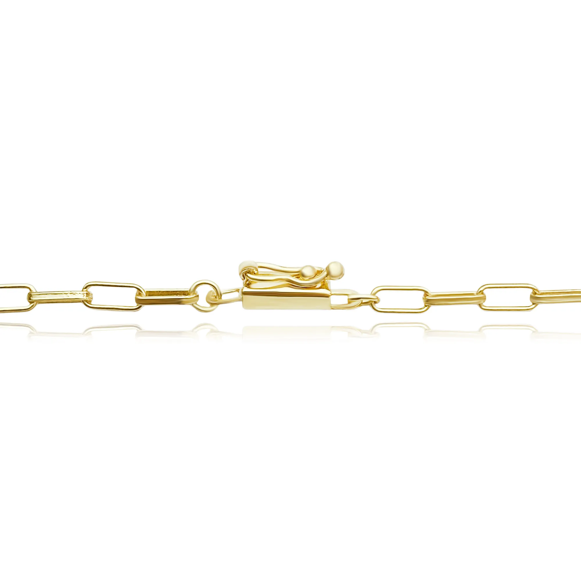 Pulseira paperclip dourada com banho de ouro 10 milésimos, design moderno e acabamento sofisticado para uso diário.