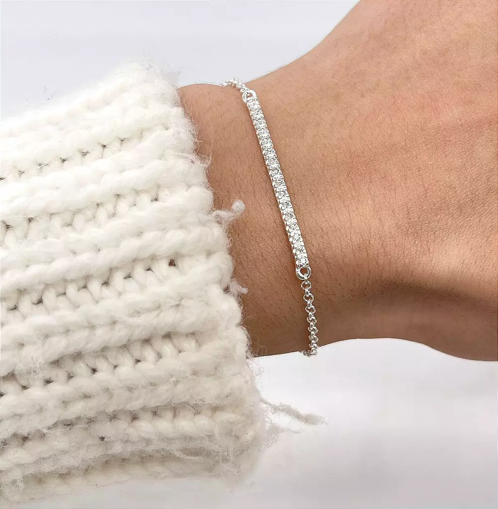 A Pulseira Cravejada Delicada em Prata 925 é a escolha perfeita para quem valoriza elegância sutil e acabamento refinado. Seu design fino e sofisticado traz uma fileira de zircônias cuidadosamente cravejadas, que proporcionam brilho na medida certa, realçando o pulso com leveza e charme.